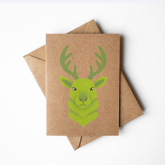 Set of 4 neon red, green, pink reindeer kraft paper Christmas Cards