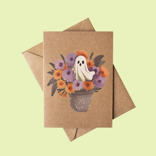 Rustic Brown Kraft Paper Cute Ghost in a Flower Pot Fall Halloween Card