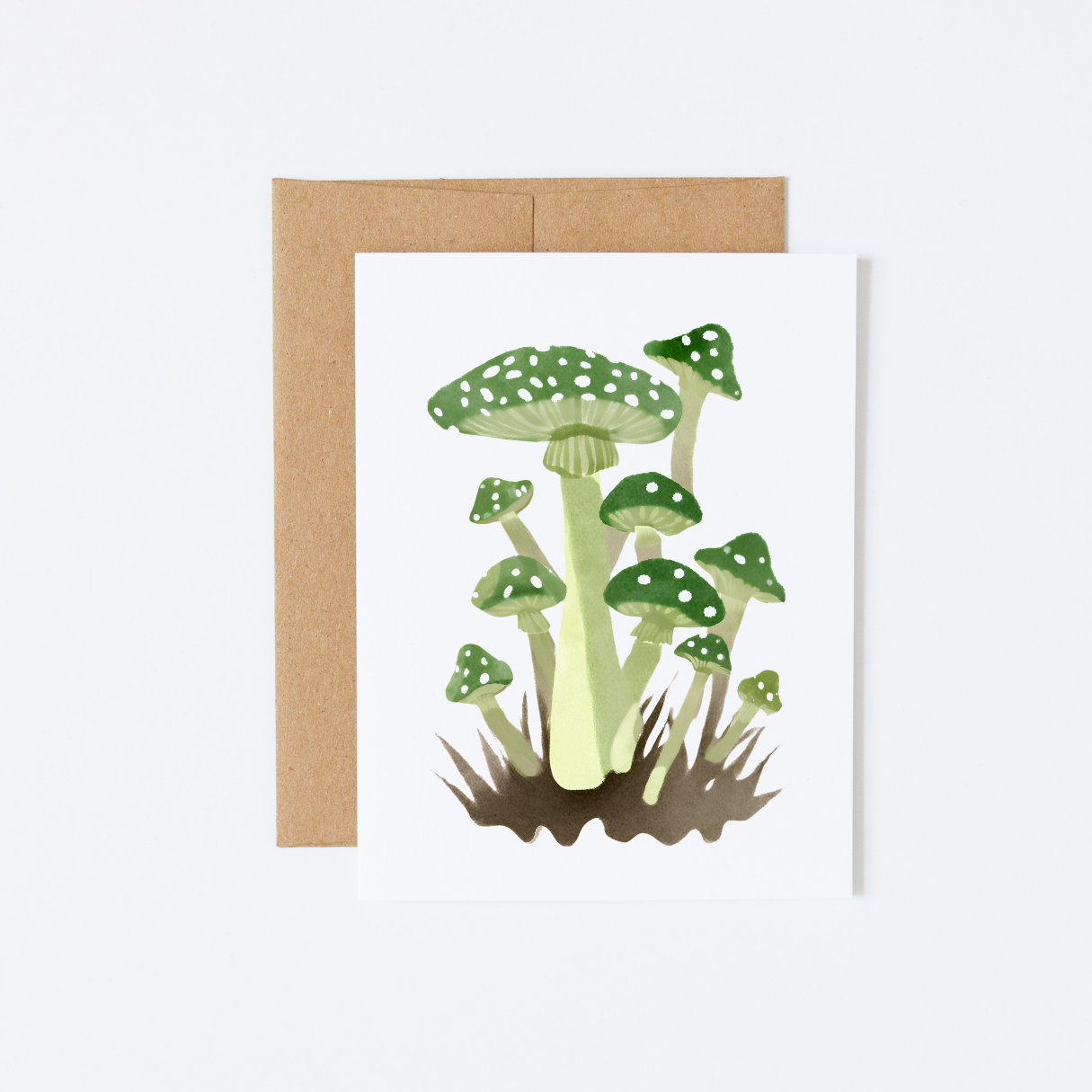 10 green Mushroom Watercolor Any Occasion Note Cards