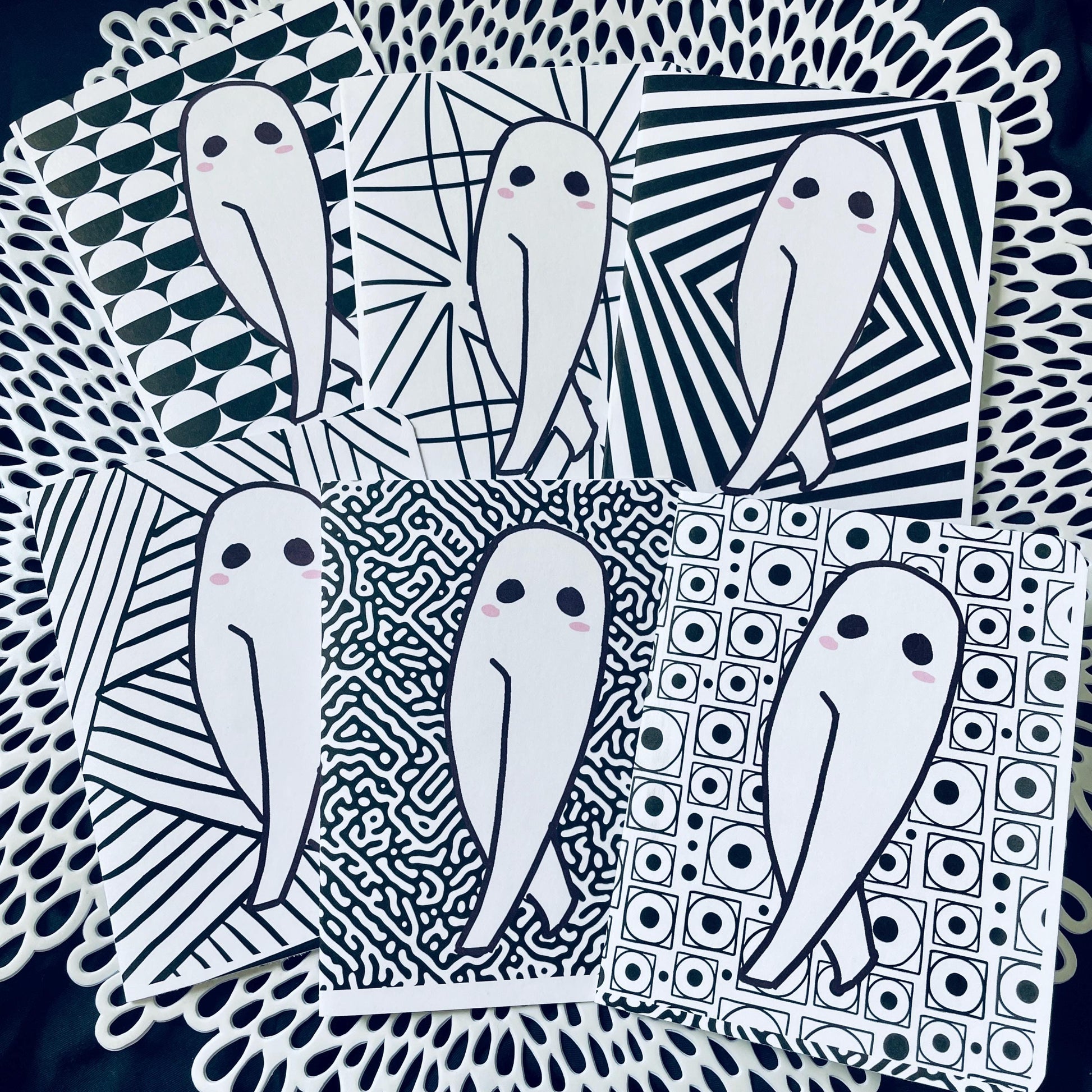 Black and White Fresno Nightcrawler Cards - Set of 6, blank inside, Fresno Nightcrawler Art, Fresno Nightwalker, pop art Fresno nightcrawler